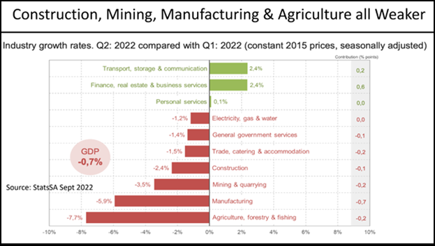By the end of Q2 this year, Stats SA described the construction sector as being in the worst shape of all industries in terms of GDP real value added recovery from the impact of the Covid-19 pandemic, at 24% smaller than it was before the pandemic. By September, the industry growth rate was -2.4%, with civil infrastructure projects increasingly delayed.