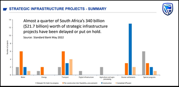 Two years ago, the MBA North welcomed the announcement that 88 investment-ready projects had been identified by the Presidency’s infrastructure and investment head Dr Kgosientsho Ramakgopa and Public Works and Infrastructure Minister Patricia de Lille, but we noted that time was running out to turn these plans into reality. Progress has been slow since then. In fact, Standard Bank reported in May this year that almost a quarter of the country’s R340 billion strategic infrastructure projects had been delayed or put on hold. Yet again, the MBA North stands ready to work with the government to implement these plans, and yet again we note that ongoing delays will further reduce our ailing sector’s ability to deliver on these ambitious projects.