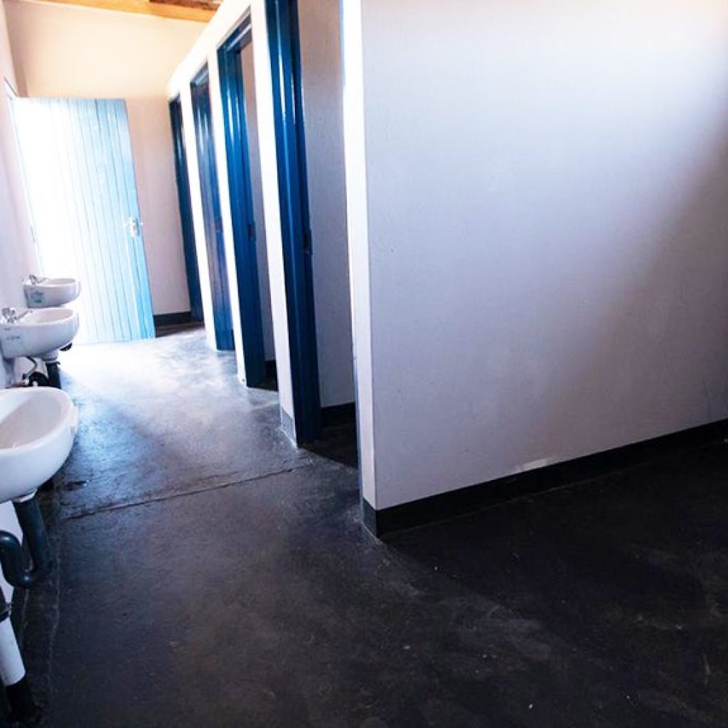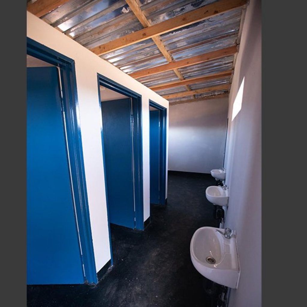 Builders drawn from the local Modderkuil community helped transform the school’s ablution facilities, which now include brand-new bathroom facilities, including ten toilets and six basins for the girl’s bathroom, as well as four toilets, six urinals and three basins for the boy’s bathroom.