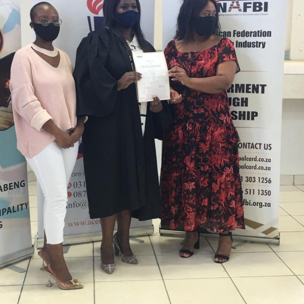Designed to empower candidates over the long term, the programmes will significantly aid them in gaining employment, improving outcomes from tender applications and starting and managing businesses. The SAQA accredited programmes were a great success, and on 25 and 26 March 2021, successful candidates received their certificates in Newcastle, Vrede and Virginia.