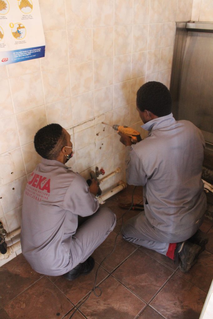 Tjeka Training Matters seconded Nomsa Selala, a very competent training facilitator and an assistant, Sibusiso Chanco, to the project at no cost, to repair all of the school’s ablution facilities. She completed the installation in only five days. This was in time for the reopening of the school following a short break in October.