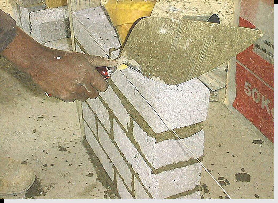 “Mortar must not be used after it has started to set, which usually occurs about two hours after it has been mixed. Do not use too thick a layer of mortar between bricks or blocks; this is wasteful and may lead to cracking,” he cautions.