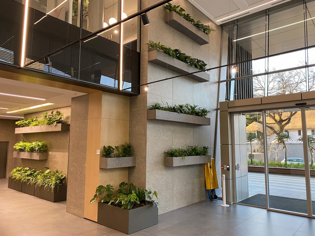 Ikusasa was designed with sustainability features throughout, including solar and waterwise sanitary fittings, wet waste composting, recycling and a range of energy efficiency interventions. To earn the Green Star rating, Concor applied a range of processes and features that reduced the building’s environmental impact. This included meeting three key requirements before construction even commenced: a Waste Management Plan (WMP), an Environmental Management Plan (EMP) and a Hazardous Waste Management Survey on existing buildings.