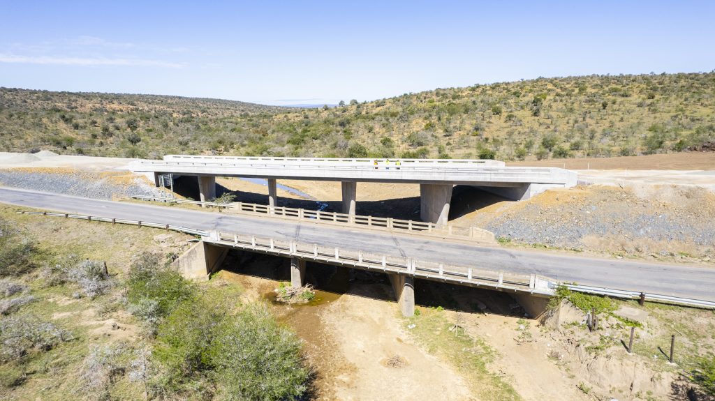 Extensive bridge widening and construction is included in the contract. On either side of Fort Beaufort, two bridges have been widened – over the Kat and Brak rivers respectively. On the route to Alice, a new 65 m bridge is being constructed over the Mxelo River. Two road-over-rail bridges – the Kwatinidubu and Kwezana bridges – are being replaced.