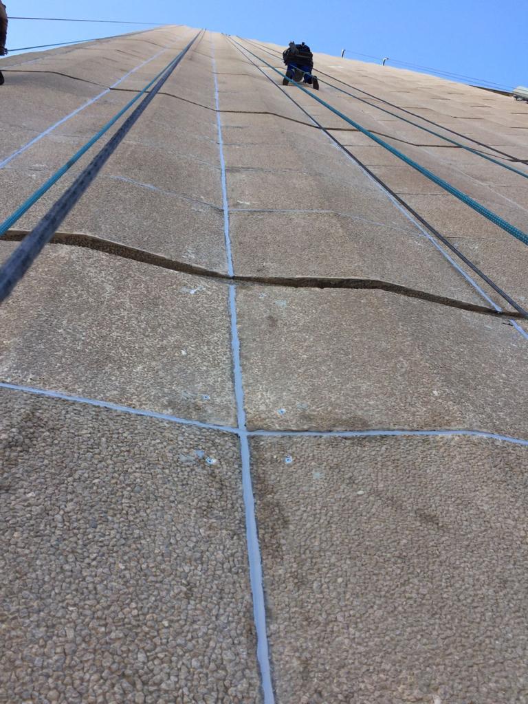 The repairs were undertaken using rope-access systems. They provide a faster and more efficient means of undertaking the work scope. This is in addition to being more cost-effective solutions than installing tons of scaffolding around the structure to gain access to the work area. They are also less intrusive and, importantly, safer systems for the public using the public walkway. Certainly, costs and resources were also saved by eliminating the need for extra safety measures that would have to be implemented to protect the public had scaffolding been used on this project.